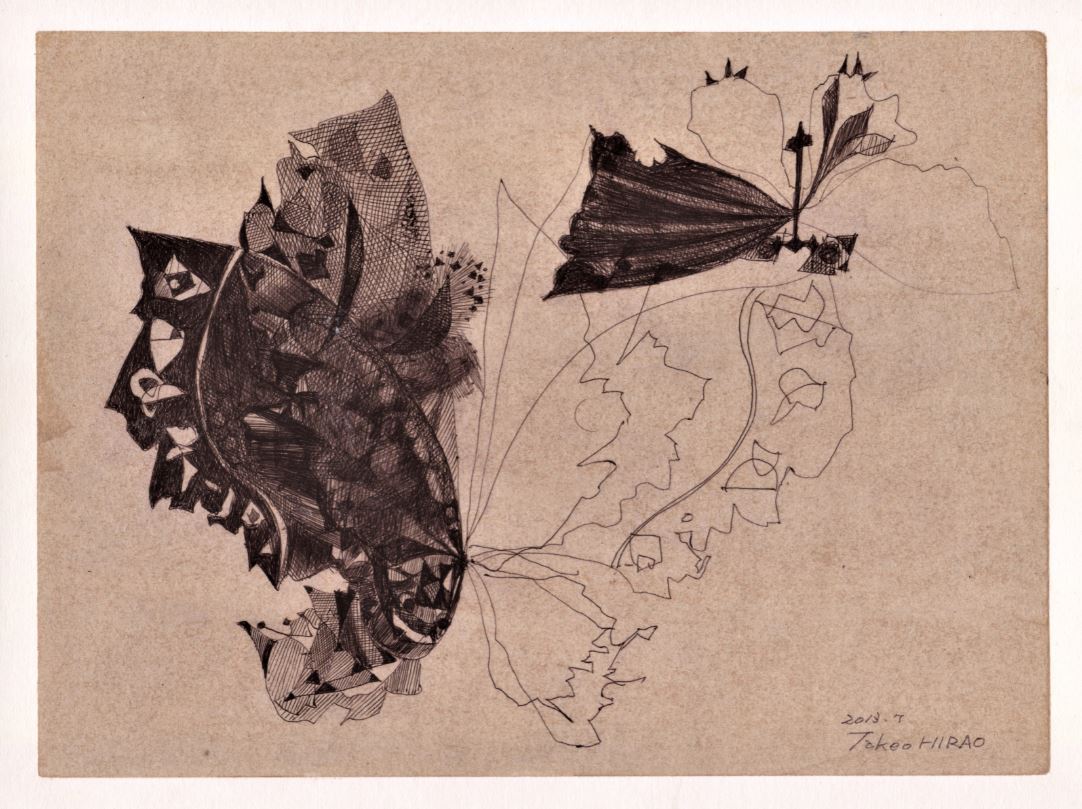 蝶々-02 : 洋紙にインク、油性ペン、ソメイヨシノの果汁